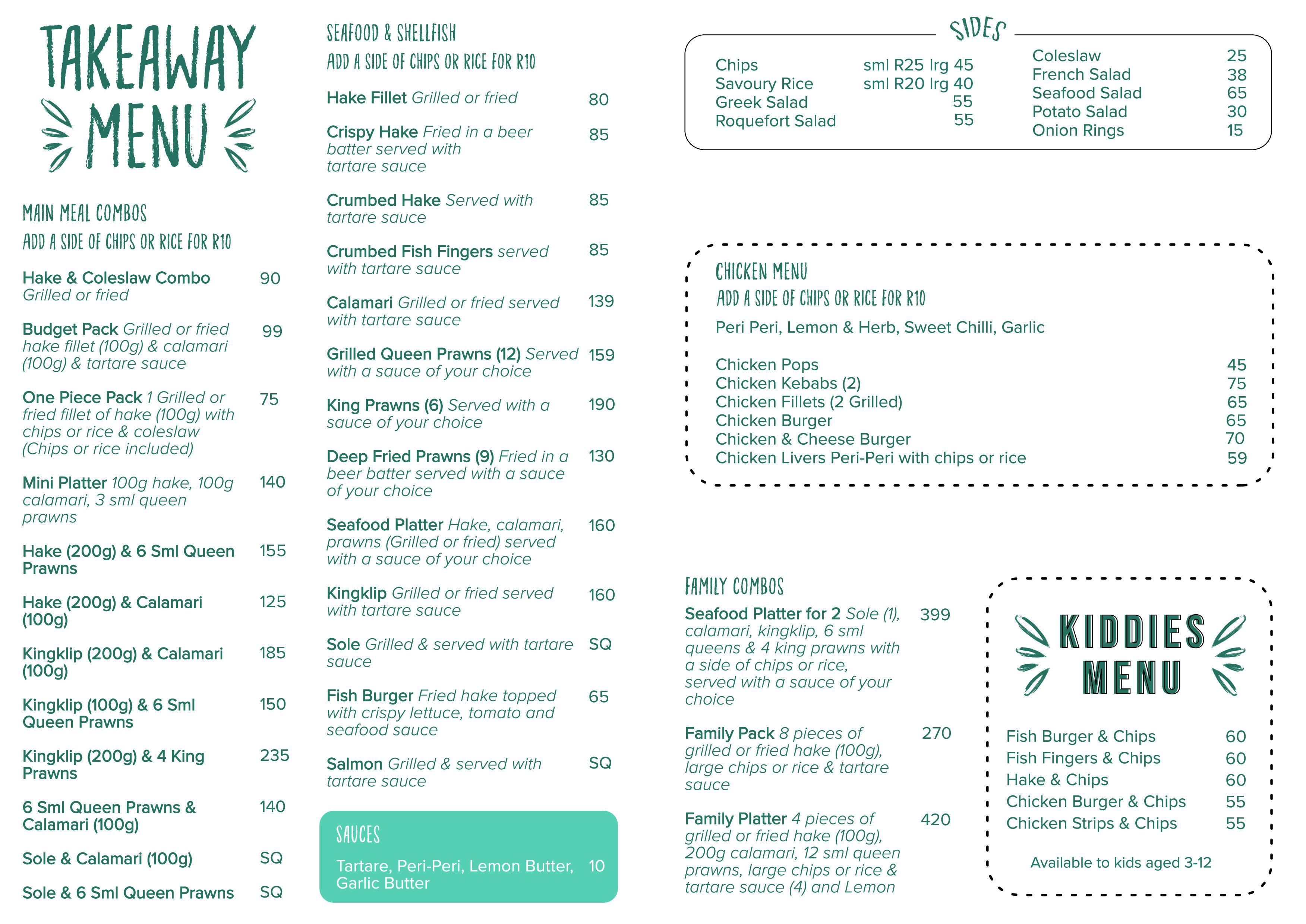The Fisherman’s Kitchen is a family owned and managed restaurant that has been serving the Bryanston community and surrounding area for over 30 years. Our success and longevity has been due to the support of our loyal customers, and our popular traditionally, and lovingly prepared seafood cuisine.